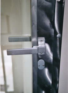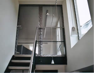 Raumabschluss mit Verbund-sicherheitsglas in Stahlrahmen gefasst.